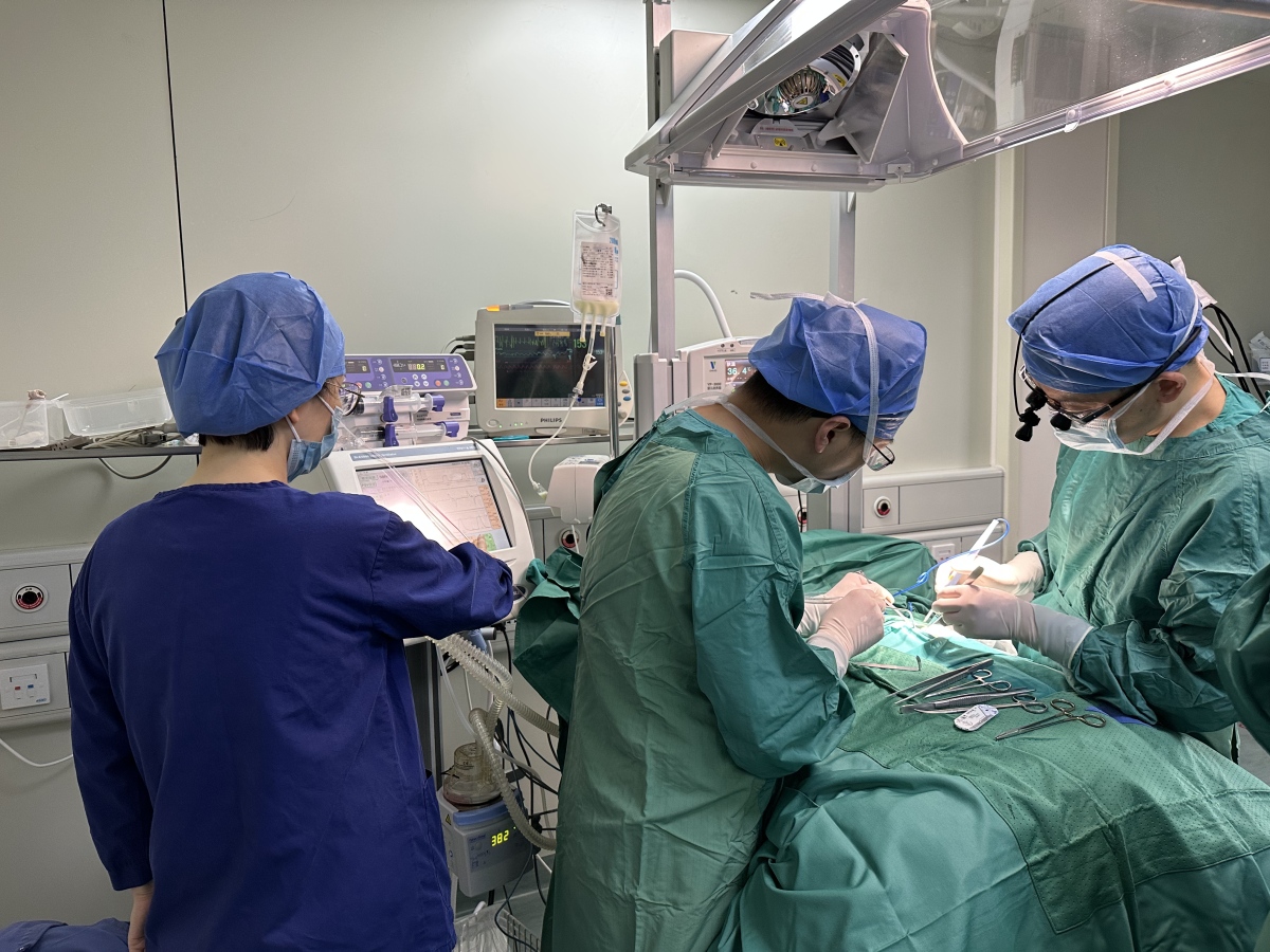 “这是目前我们做过的体重、胎龄都最小的双超(超早早产儿、超低出生体重儿)心脏手术。”陈君贤主任介绍说,宝宝的躯干还没有他的一支笔长,手术切口微小,这意味着要将动脉导管游离出来十分不易,每个步骤都必须有条不紊,每个动作都要精细再精细,非常考验主刀医生的耐心。