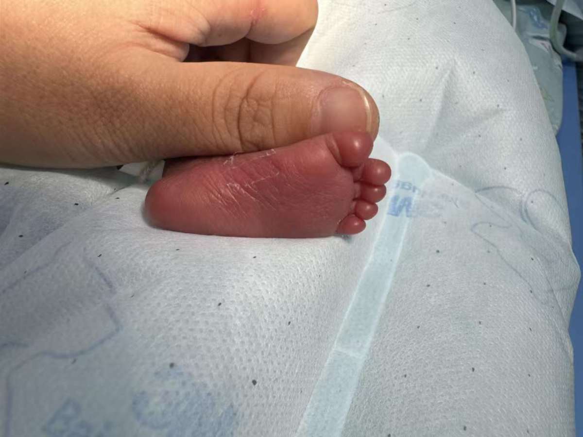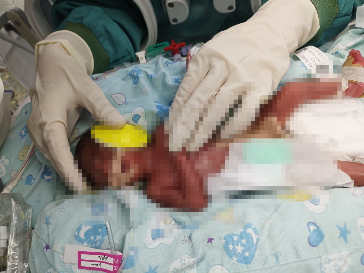 到宝宝出生后的第4周,纠正胎龄虽然有28周,体重仍只有900克,生命体征极不稳定,轻微的外界刺激都会引起氧合下降,即使是转运到手术室的那点距离,都会有极大的生命危险。