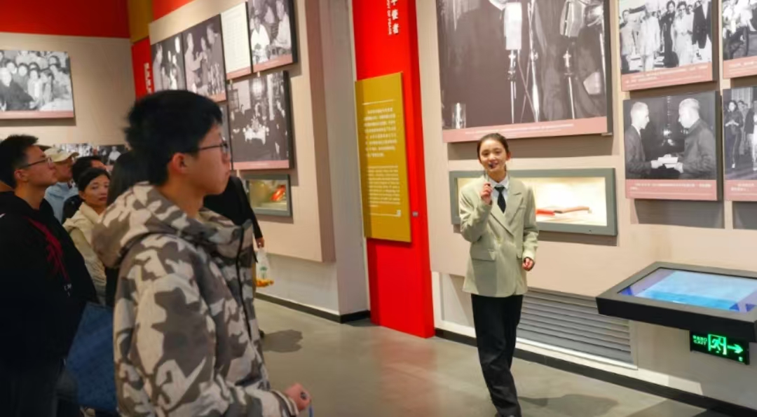 学生志愿者讲解员何彦岚讲述了新中国成立初期,刘少奇同志分管青年工作时的感人事迹。在青年眼中,他是一位慈祥宽厚的长者;在学生们心中,他是一位值得信赖的良师。“学习、学习、再学习。”刘少奇同志亲切地教诲青年做到勤学习、善思考,勉励青年将个人价值展现在为人民服务中。通过对不同时代青年使命的认识,同学们更深刻地领悟到新时代青年的光荣使命。