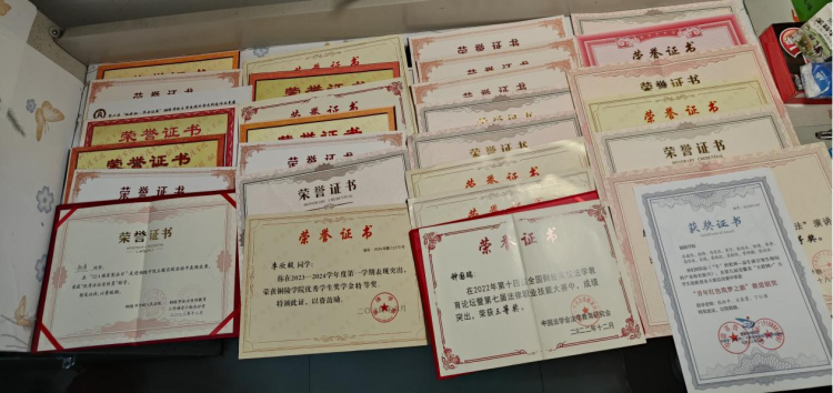 在进入法学专业学习之初,18栋118宿舍的钟国瑞、李欣毅、杨勇、殷悦水四名同学就意识到这是一门需要深耕的学科。实务中法律问题的多样化和复杂化,使他们决心为法律事业奋发学习,为了正义信仰砥砺前行,也让他们逐渐坚定通过法考的信念。三年来,他们讲述中国宪法精神,认真参与专业实习,撰写法学调查报告,积极参加各类学科竞赛,在专业领域不断求知探索。四人都高度重视专业知识的学习,班级“综测”排名均居前列。杨勇说:“其实早在2022年的春天,我就与法考结缘。当时学院开设了刑法、民法的专业课,我通过法考课程对专业知识进行补充,从那时起,我便立志要通过法考。”殷悦水也表示:“我是转专业到法学专业的,这是我的选择。一切来之不易,我更应该用实际行动来表达自己的热爱,通过法考是应有之义。”