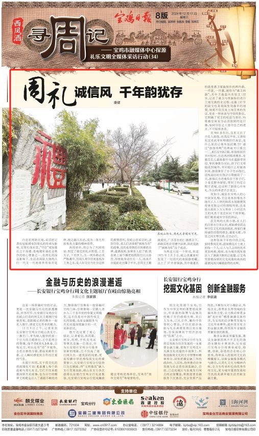 行走在周原大地,采访团记者处处能感受到周礼的传承与影响。在周礼体系里,“守信”宛如基石之于高楼,是构建和谐社会秩序的核心要素之一。在周礼的深远影响下,生活在周原大地的人们一代又一代地将其传承并延续,使之融入生活,成为一条无形却极具力量的精神纽带。
