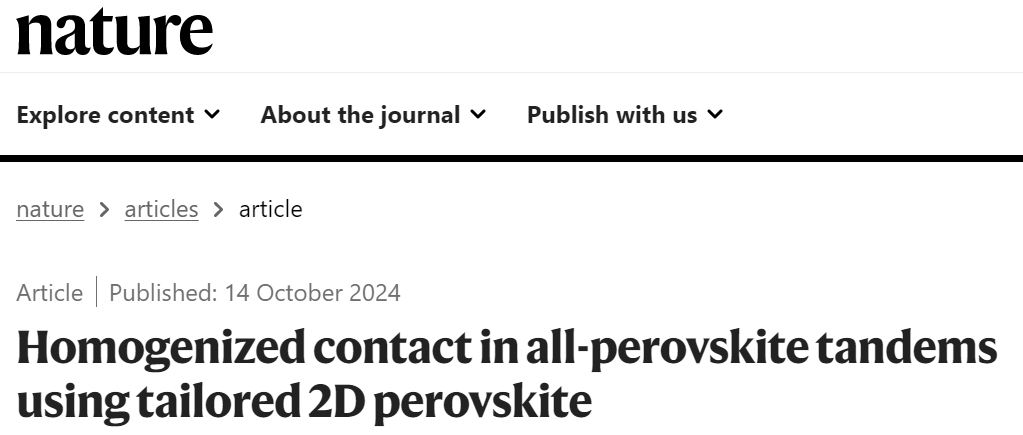 Wang, Y., Lin, R., Liu, C. et al. Homogenized contact in all-perovskite tandems using tailored 2D perovskite[J]. Nature , 2024.