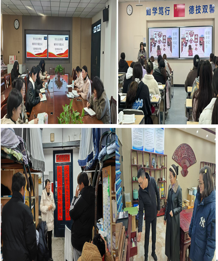 学院学生工作负责人带领全体专兼职辅导员深入学生宿舍,与同学们亲切地交流,详细询问他们的日常生活情况,耐心解答同学们提出的各种问题,引导他们保持良好的生活习惯,注意个人财物安全。重点对宿舍内使用违规电器、私拉电线、阳台堆放物品等安全细节进行细致检查,排除安全隐患。同时,学院还借此机会收集学生对于宿舍管理的意见和建议,并将相关问题反馈到宿管部门,以便更好地满足学生的需求。