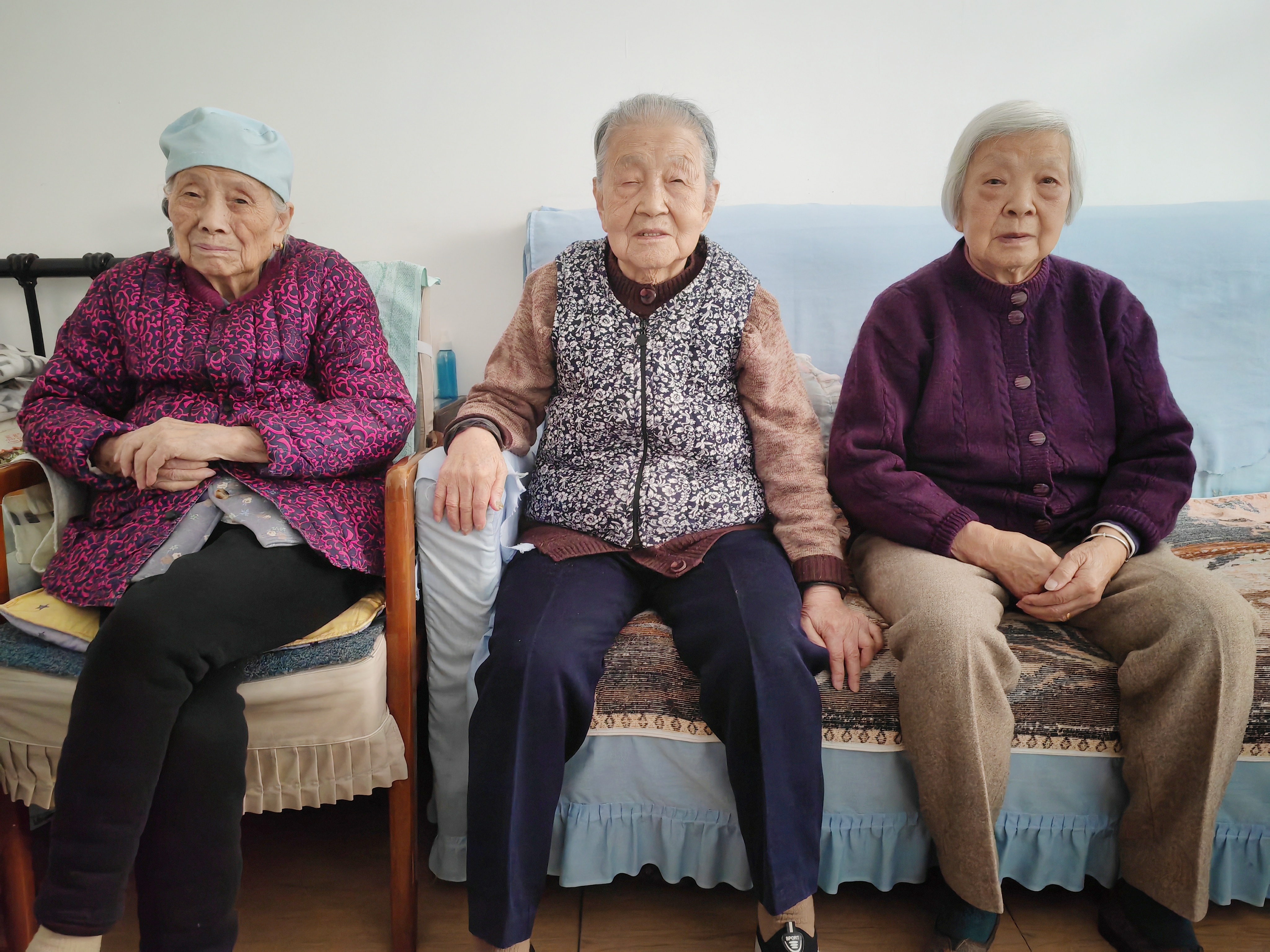 王玉林91岁,是黄思荣(90岁)、宋清梅(90岁)认同的“大姐大”。48年来她们从未红过脸吵过架,虽然不是亲姐妹,亲密的胜过亲姐妹。