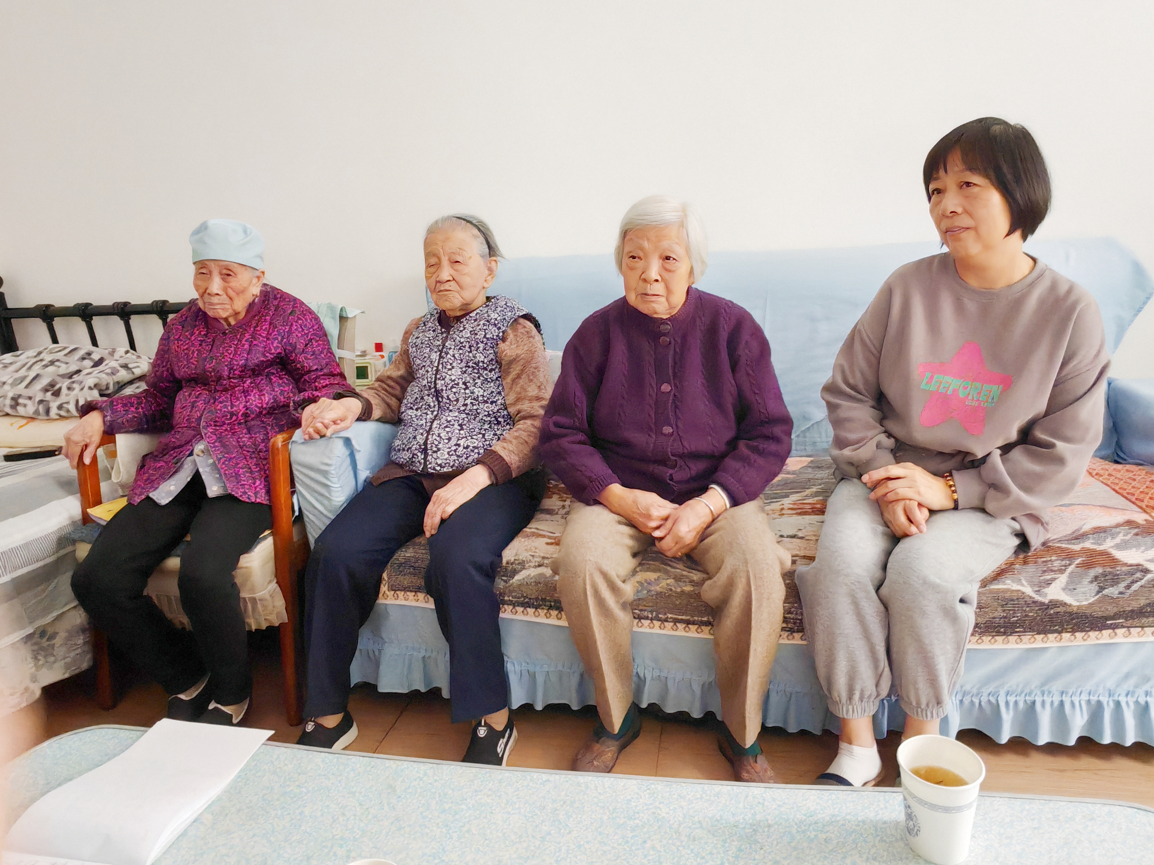 阿姨们今天个个精神状态良好满脸笑容,根本看不出是90岁高龄的老人,虽然有些耳背,但思维比较清晰、记忆力还可以。