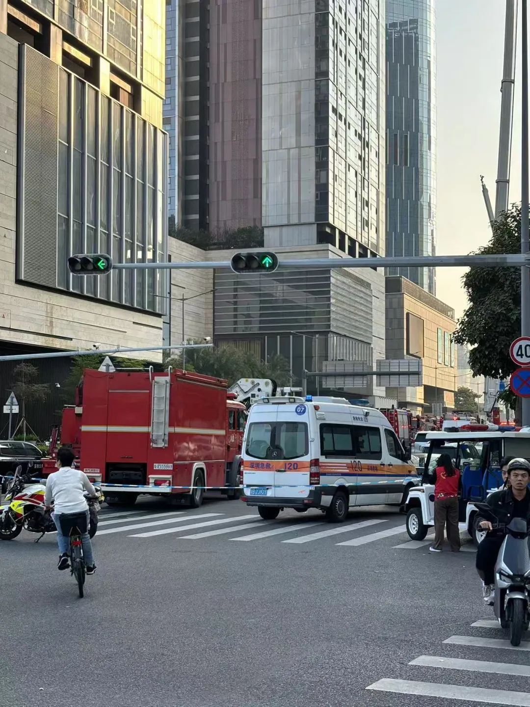 15时40分,奥一新闻记者在现场看到,涉事楼栋外围已拉上警戒线,有消防车正在对网传爆炸方向喷水,现场并未发现明火。同时,陆续有救护车从现场离开。