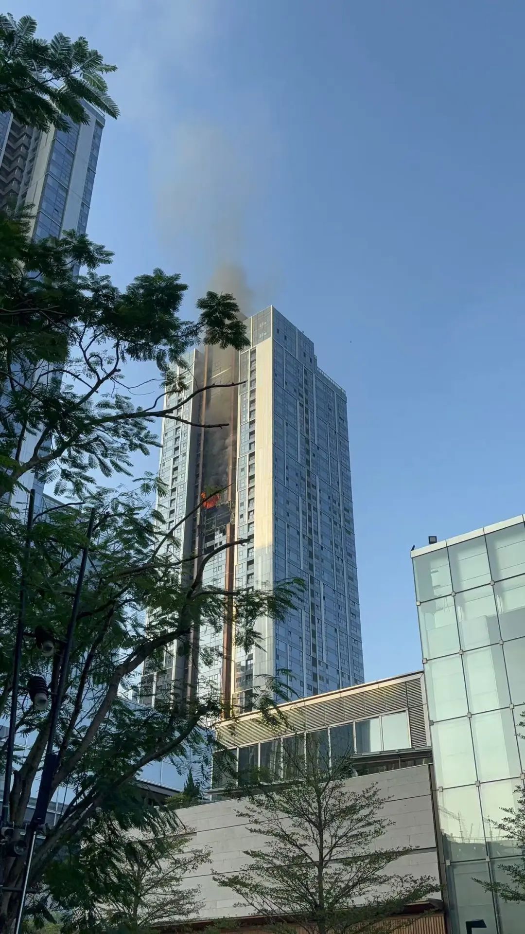 12月11日下午, 网传深圳湾悦府一高层住宅起火,多名附近居民称有听到爆炸声,记者正在核实具体情况。