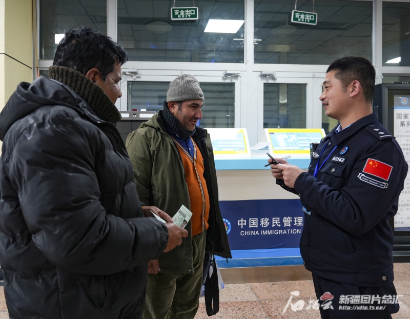 12月9日,红其拉甫出入境边防检查站设置专门咨询台,在执勤现场安排精通外语的民警提供通关指引。张楠摄