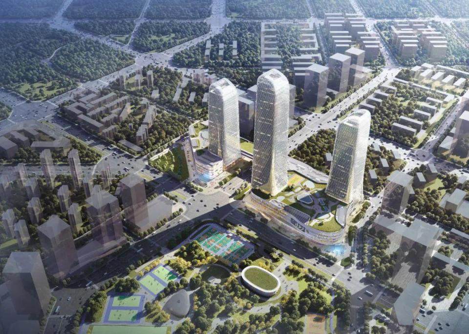 高铁片区超高层地标建筑项目规模宏大,横跨55号和57号地块,由一主两副共3塔及裙楼构成超高层建筑集群。其中,57号地块规划用地59.1亩,涵盖办公、商业、裙楼与地下车库,总建筑面积达43.82万平方米,规划建设258米主塔楼和200米副塔楼及裙房。项目将建设集高端商圈、会议展览、商务办公、休闲住宿等多功能于一体的地标建筑。建成后,将成为石家庄的最高建筑,重塑城市天际线,也将成为吸引全国优质资源、推动产业升级的重要平台,极大提升石家庄的城市形象与影响力,彰显城市现代化发展新风貌。