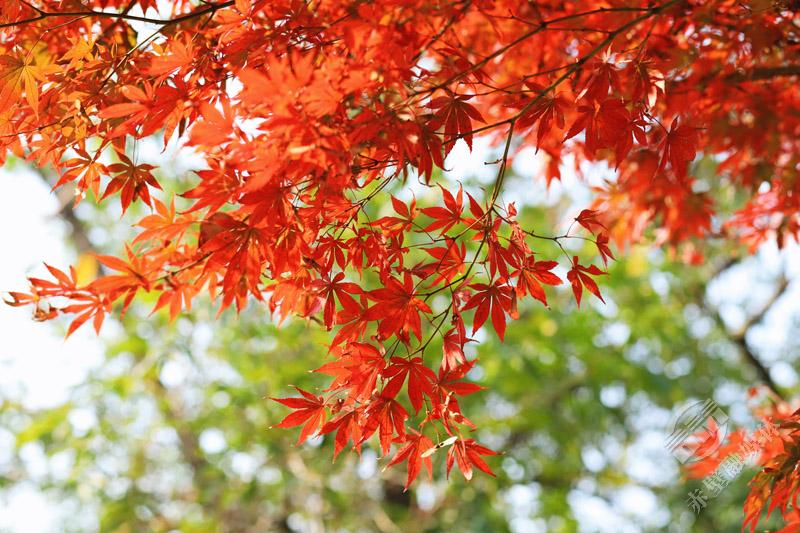 红枫的色彩在阳光下绽放