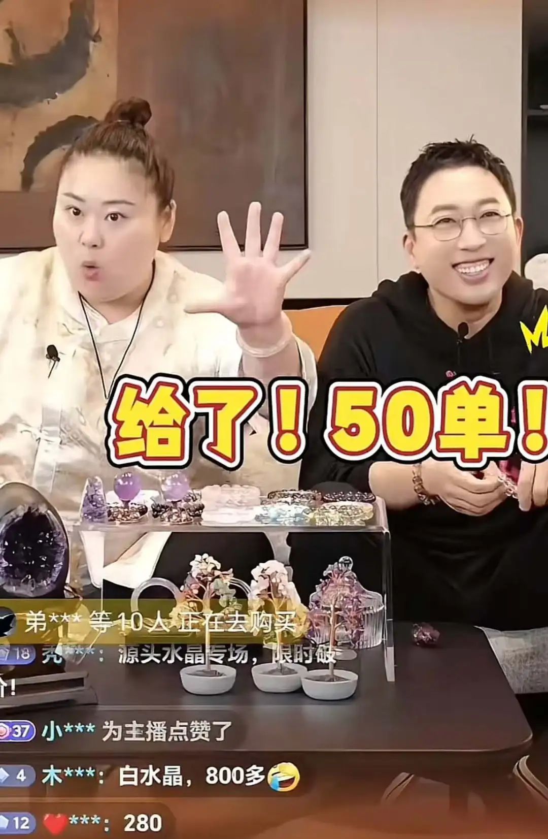 明星直播间中的水晶产品不只局限于手串、项链等饰品,还有水晶球排列组成的水晶阵、用来消磁的水晶洞、水晶碗、大块的水晶石等,可谓是五花八门。
