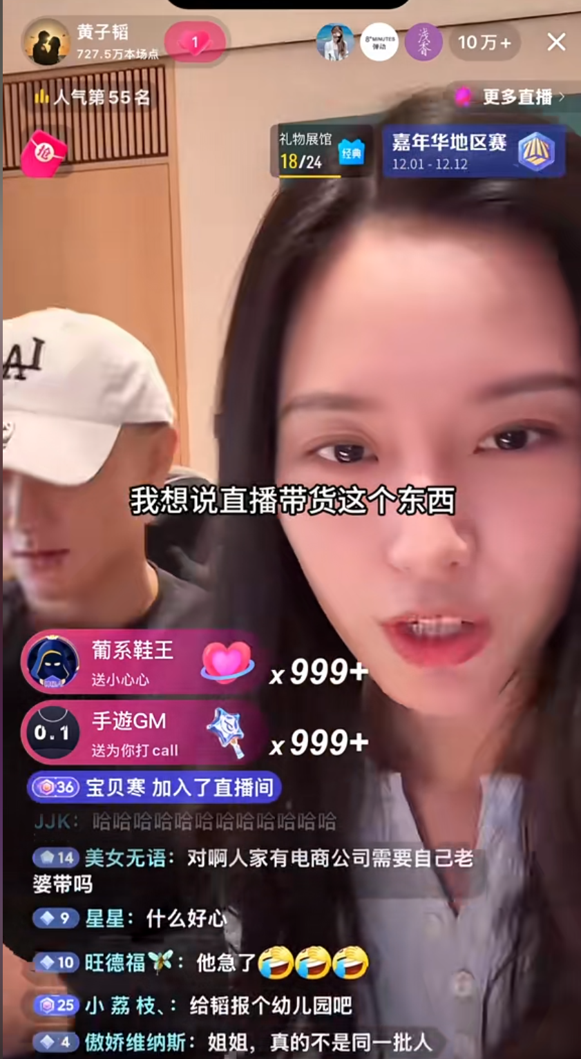 12月5日,黄子韬婚后首次抖音直播,观看人次达到2888万。
