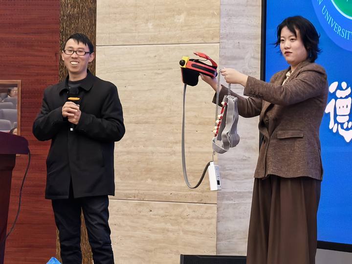 论坛展示的穿戴式智能推拿宝,吸引了不少人的目光。该设备是邰先桃教授领衔团队的应用研究成果,通过为患儿佩戴智能化推拿设备,智能化生成针对性的穴位推拿模式,实现对患脑瘫等基础性疾病儿童的康复治疗,该科研成果2022年荣获云南省科技进步二等奖。目前,上海一家企业已经与学校达成科技成果转化意向,该公司负责人表示,该产品在脑瘫儿童治疗方面已经达到国内先进水平,非常看好市场前景。