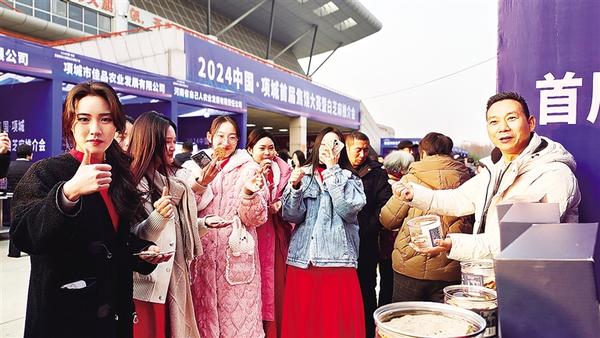 “我们家制作的焦馍,配料有白芝麻、黑芝麻、高粱粉、玉米粉、鸡内金等,看起来金黄薄脆,吃起来每一口都能让人感受到满满的芝麻香,回味无穷。”项城市三妞食品有限公司的一名销售人员向市民推介。