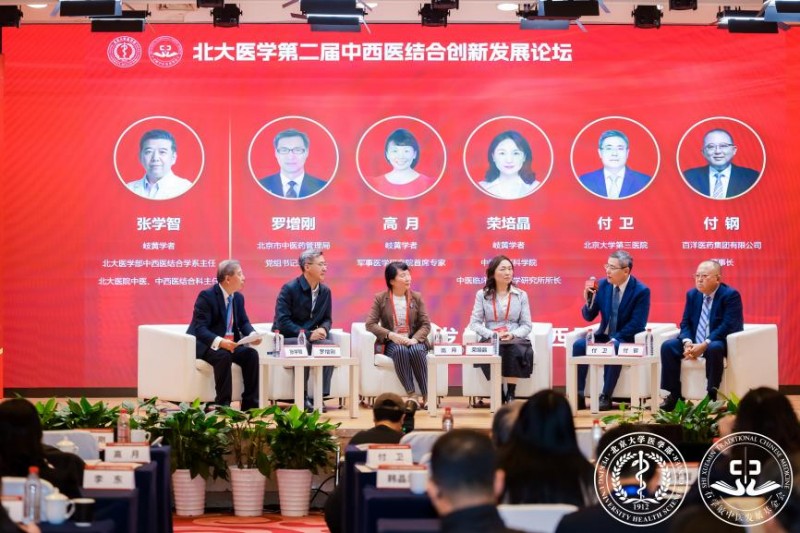 圆桌讨论环节,北京市中医药管理局党组书记、局长罗增刚;岐黄学者,军事医学研究院首席专家、军队特殊环境智能中医药研究实验室主任高月;岐黄学者,中国中医科学院中医临床基础医学研究所所长荣培晶;北京大学第三医院院长付卫;百洋医药集团有限公司董事长付钢共同参与了圆桌讨论。岐黄学者,北京大学医学部中西医结合学系主任,北京大学第一医院中医、中西医结合科主任张学智担任本环节主持。嘉宾们从各自视角就中西医传承创新发展进行了深入研讨。