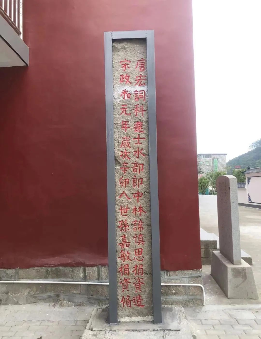 记者看到,这块石刻高约两米,石柱形,上面刻着两行大字:“唐宏词科进士水部郎中林讳慎思捐资造,宋政和元年岁次辛卯八世孙嘉敏捐资修。”