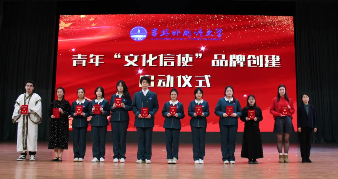随后,吉林外国语大学青年“文化信使”品牌创建启动仪式举行。学校党委副书记苗晶为首批青年“文化信使”代表颁发聘书。