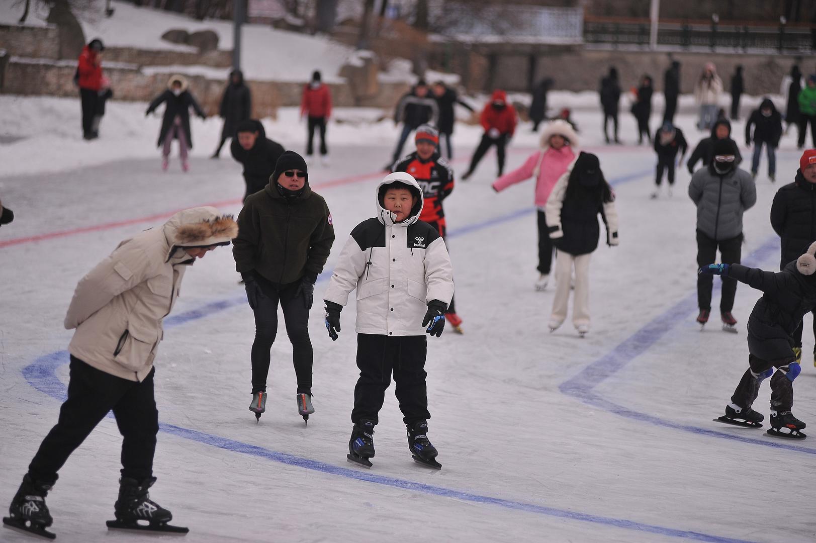▲2024年12月14日,哈尔滨,在香坊区黛秀湖公益冰场内,大家尽情享受冰上运动带来的快乐。图据视觉中国