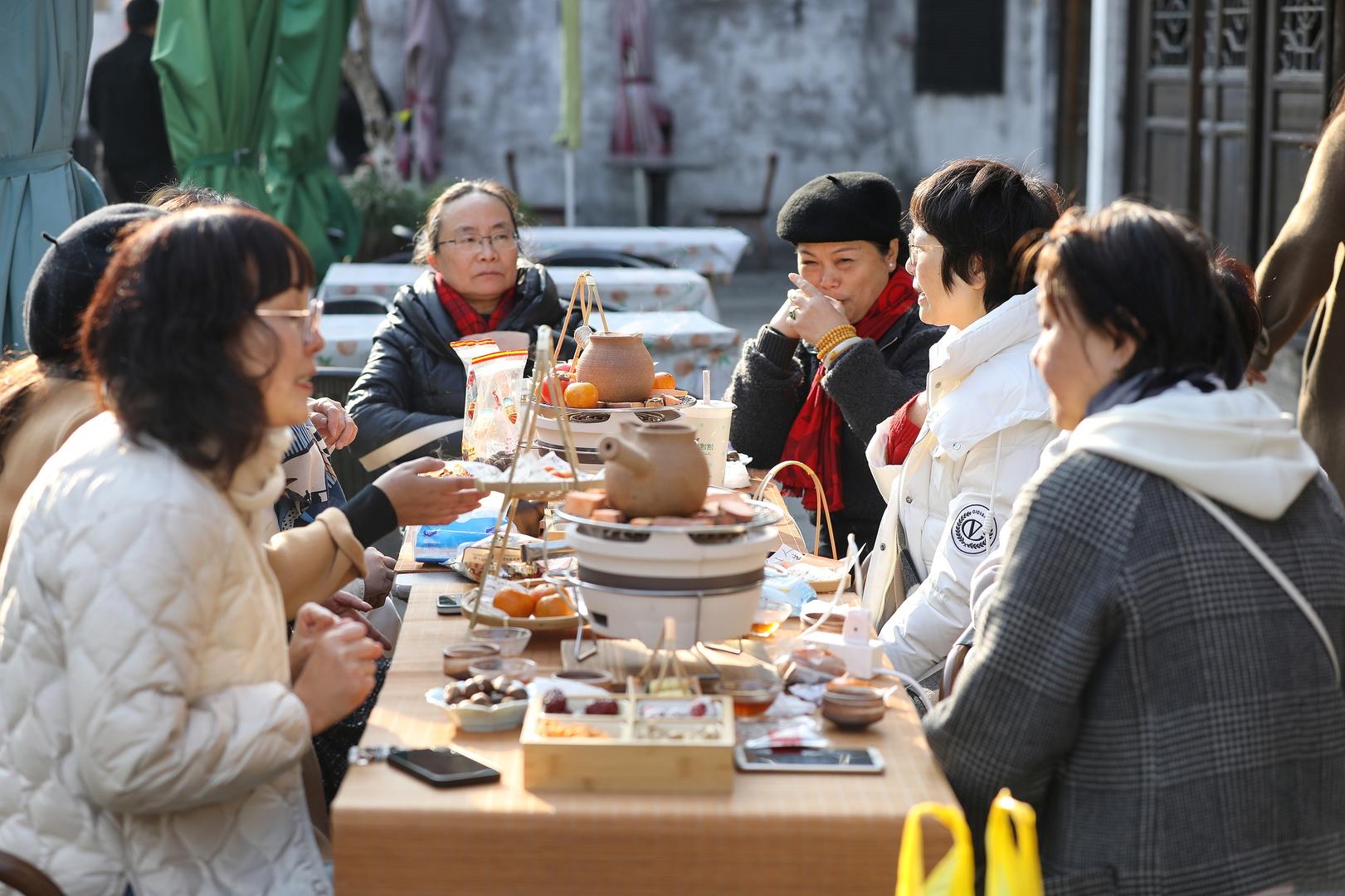 ▲2024年12月14日,浙江省嘉兴市,在南湖区月河历史街区一家茶室,游客正在“围炉烤茶” 图据视觉中国