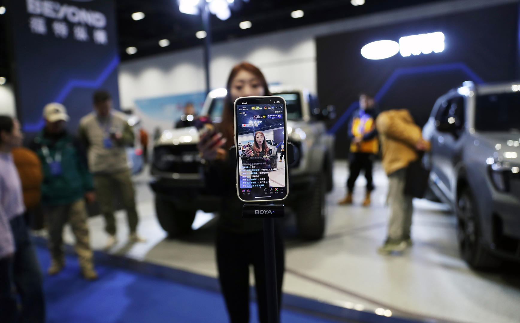 ▲2024年12月13日,北京国家会议中心二期,主播在车展上直播图据视觉中国