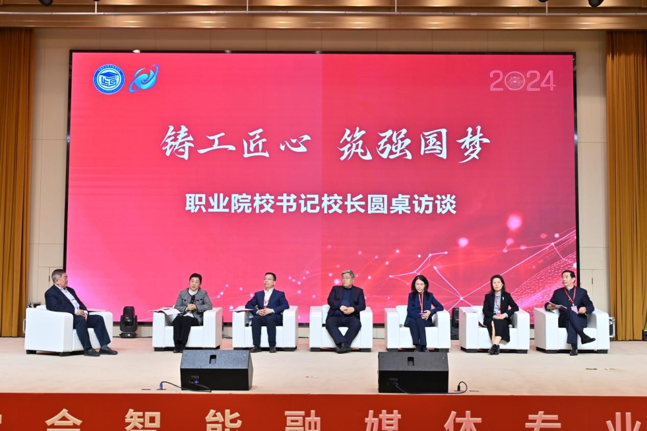 12月9日,中国职业技术教育学会智能融媒体专业委员会2024年年会在东营召开。会议期间举行了“铸工匠心·筑强国梦”——职业院校书记校长圆桌访谈,东营职业学院党委委员、副院长张汝山作为受邀访谈嘉宾参加“产教融合高质量”访谈环节。同步参加访谈的还有深圳职业技术大学党委副书记、纪委书记王慧,陕西工业职业技术学院党委书记惠朝阳,青岛电子学校校长崔西展,北京市丰台区职业教育中心学校党委书记、校长赵爱芹,山东传媒职业学院党委书记孙茜芸。