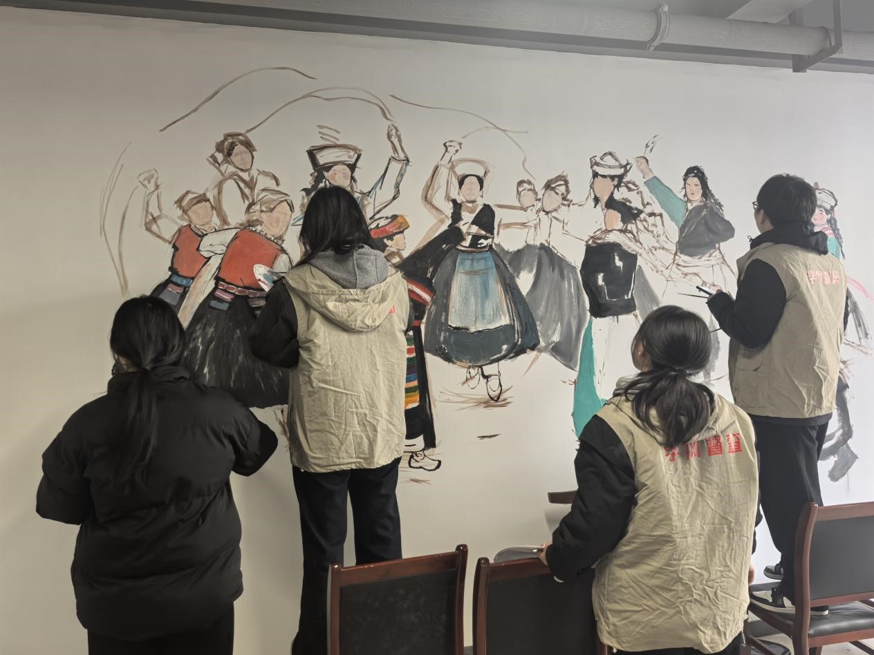 活动现场,志愿者们满怀热忱与专注,全身心投入到创作之中。墙绘画面犹如一幅徐徐铺展的民族文化绚丽长卷,内容精彩纷呈且极具感染力。瞧,那身着五彩斑斓传统服饰的各民族同胞们,有的挥动着飘逸的衣袖,似灵动的彩云在天际翩跹;有的敲响欢快的手鼓,如激昂的雷音在大地回荡;还有的放声高歌,仿若清脆的鸟鸣在林间穿梭。他们相互簇拥,载歌载舞,脸上洋溢着的灿烂笑容如同春日暖阳,驱散了冬日的严寒。这般欢乐场景淋漓尽致地展现出中华民族大家庭丰富多元的文化魅力,以及各民族间其乐融融、和谐共生的美好景象,令人心潮澎湃,不禁沉醉于这浓郁的民族情谊与团结氛围之中。