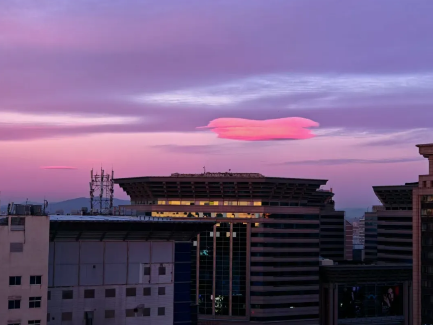 我们平时说的“飞碟云”,也叫荚状云,根据出现高度的不同,可能是荚状高积云或者荚状层积云,它的形状有点像凸透镜或者杏仁,因为很像科幻作品中外星飞碟的样子而得名。