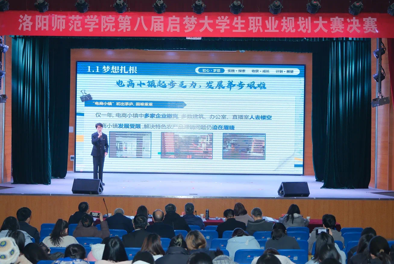 12月12日,洛阳师范学院第八届启梦大学生职业规划大赛决赛在学校蓓蕾剧场举行,大赛由招生就业处(就业指导与服务中心)、洛阳市人力资源和公共就业服务中心主办,电子商务学院和龙门书院三号院承办。校党委副书记张运礼出席,党委学生工作部(学生处)、校团委、教务处等单位负责人,各学院、书院社区党政负责人,党委副书记代表、就业办公室主任、大赛指导教师、班主任、学生代表以及招生就业处全体人员观摩比赛。