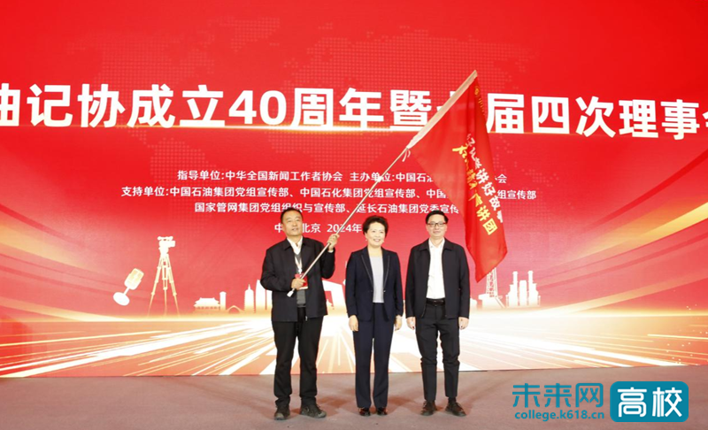 讲好石油故事,凝聚文化合力。在全国上下深入学习贯彻党的二十届三中全会精神,石油石化能源行业奋进高质量发展之际,12月13日上午,中国石油记协成立40周年暨七届四次理事会议在北京石油科技交流中心召开。程永清受邀出席活动,并代表学校作为全国石油石化能源系统第二届“好记者讲好故事石油精神宣讲团”进高校宣讲活动首场进驻高校接受大会授旗。