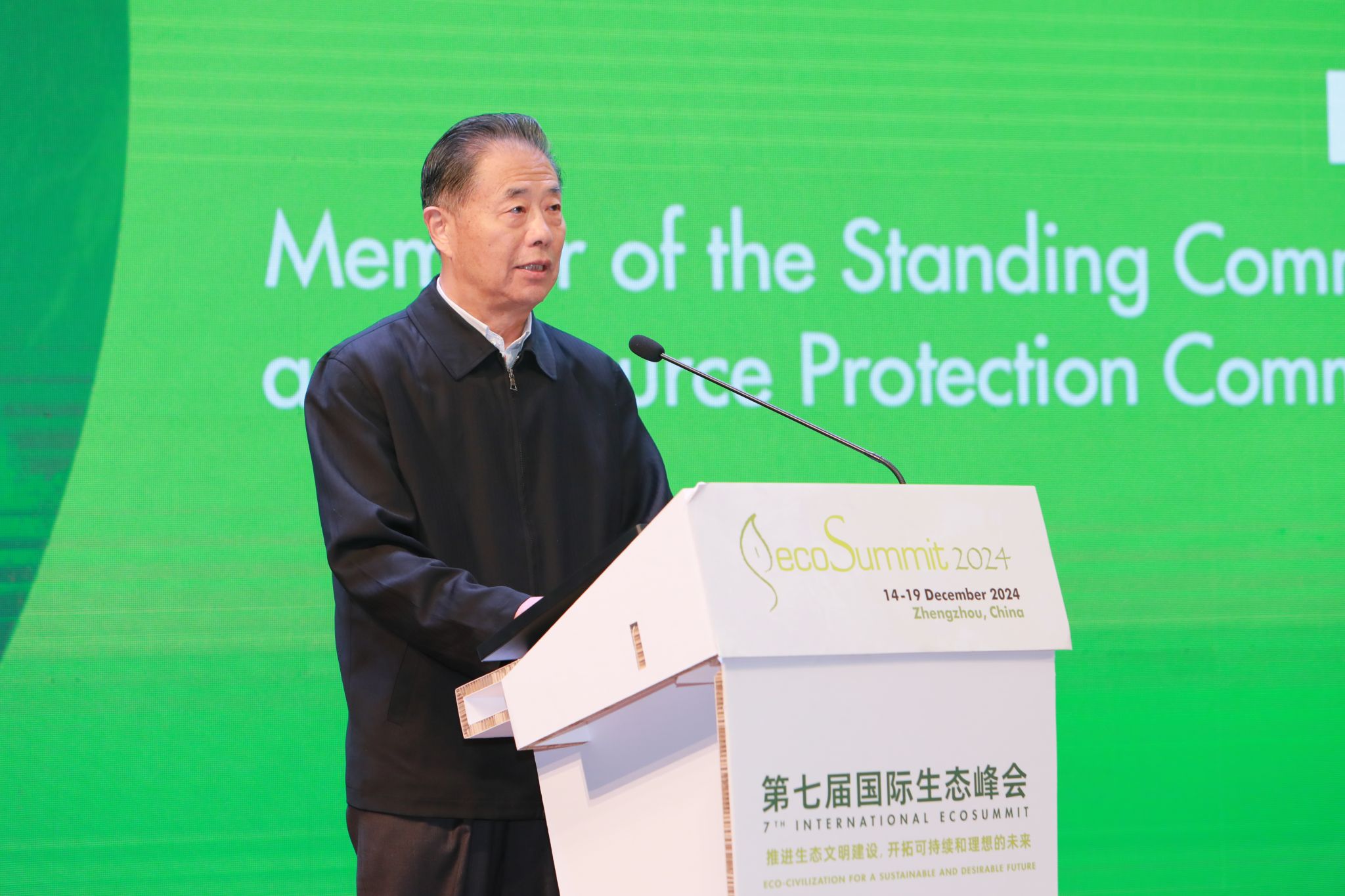开幕式由英国伦敦大学学院全球繁荣研究所罗伯特·科斯坦扎院士主持。全国人大常委会委员、环境与资源保护委员会副主任委员鄂竟平出席开幕式并讲话。河南省副省长孙运锋,国际生态高峰理事会主席、美国加州大学河滨分校终身教授李百炼院士,第七届国际生态峰会共同主席、华北水利水电大学校长刘俊国出席开幕式并致辞。中国地理学会理事长、中国科学院院士、中国科学院青藏高原研究所原所长陈发虎,美国国家科学院院士、太平洋研究所名誉所长彼得·格莱克,美国艺术和科学院院士、杜克大学教授斯图尔特·皮姆,欧洲环境署(EEA)原署长、联合国环境署(UNEP)首席科学家、英国伦敦大学学院教授杰奎琳·麦克莱德,第七届国际生态峰会共同主席、英国伦敦大学学院艾达·库比谢夫斯基,河南省人民代表大会常务委员会环境与资源保护工作委员会主任史秉锐,河南省水利厅厅长申季维,河南省委教育工委专职副书记、省教育厅党组成员尹洪斌,河南省生态环境厅二级巡视员高群,华北水利水电大学党委书记王笃波,华北水利水电大学原校长刘文锴等出席开幕式。