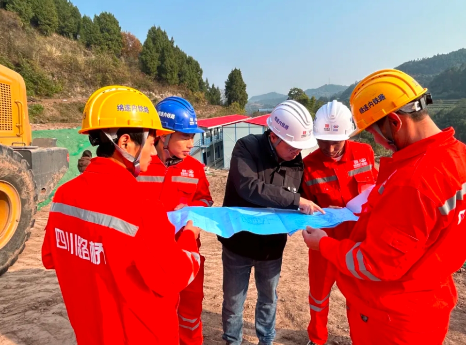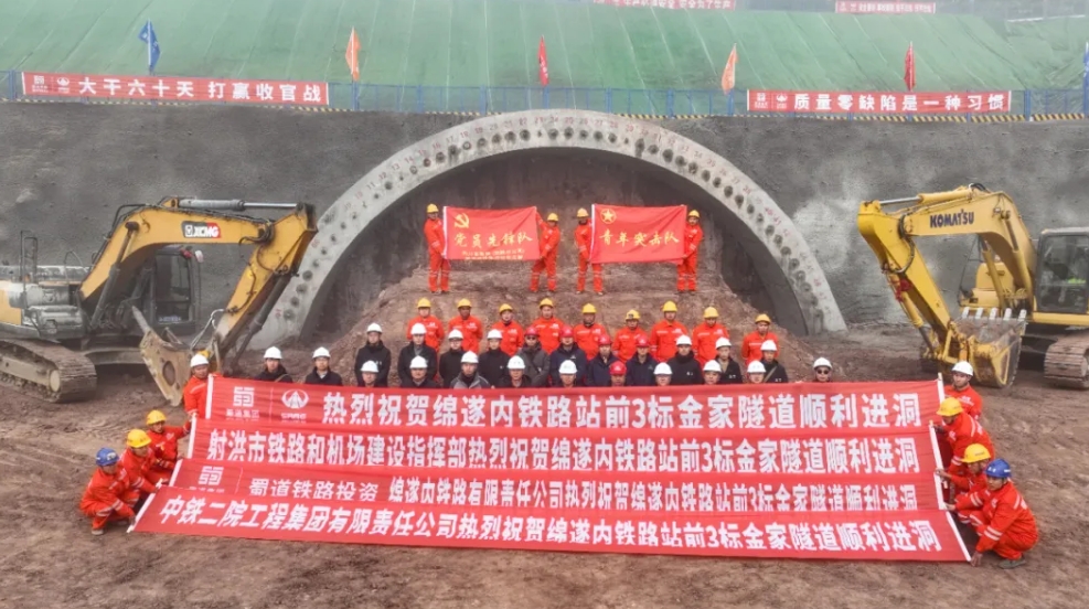 据项目部工作人员介绍,此次进洞施工点存在浅埋段,并属于微瓦斯隧道环境,因此采用了机械开挖方式,并利用大管棚超前支护设计确保安全进洞。面对复杂的地质条件和高风险的施工环境,勘测、便道开口施工及安全管控成为了影响进度施工的关键因素。绵遂内铁路公司与各参建单位协同合作,科学部署,全面推进,建立了高效的征拆协调机制,完成了遂宁段首个房屋拆除工作,逐步打通了施工建设和材料进场的“生命线”,全力保障施工外部环境的顺畅。