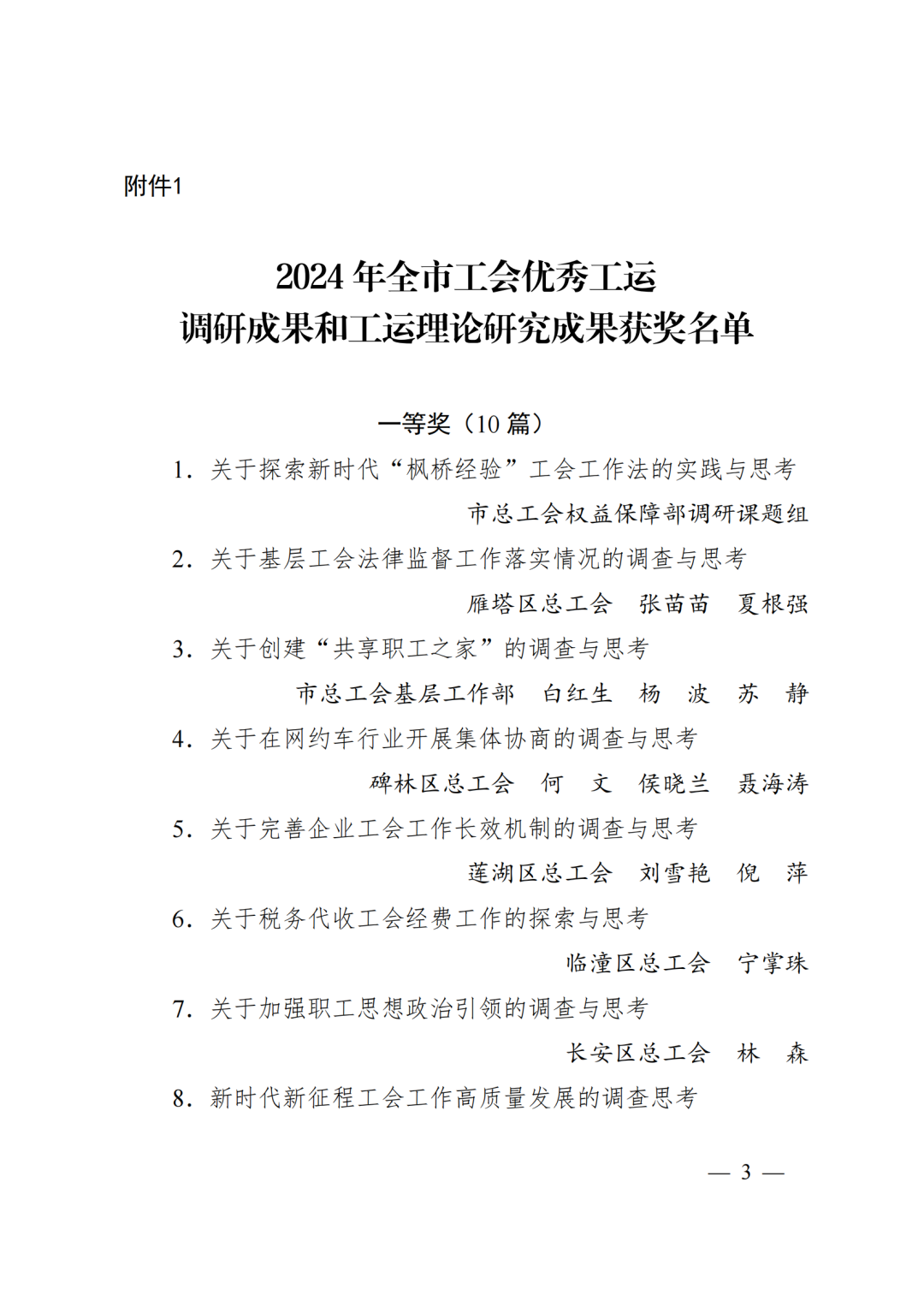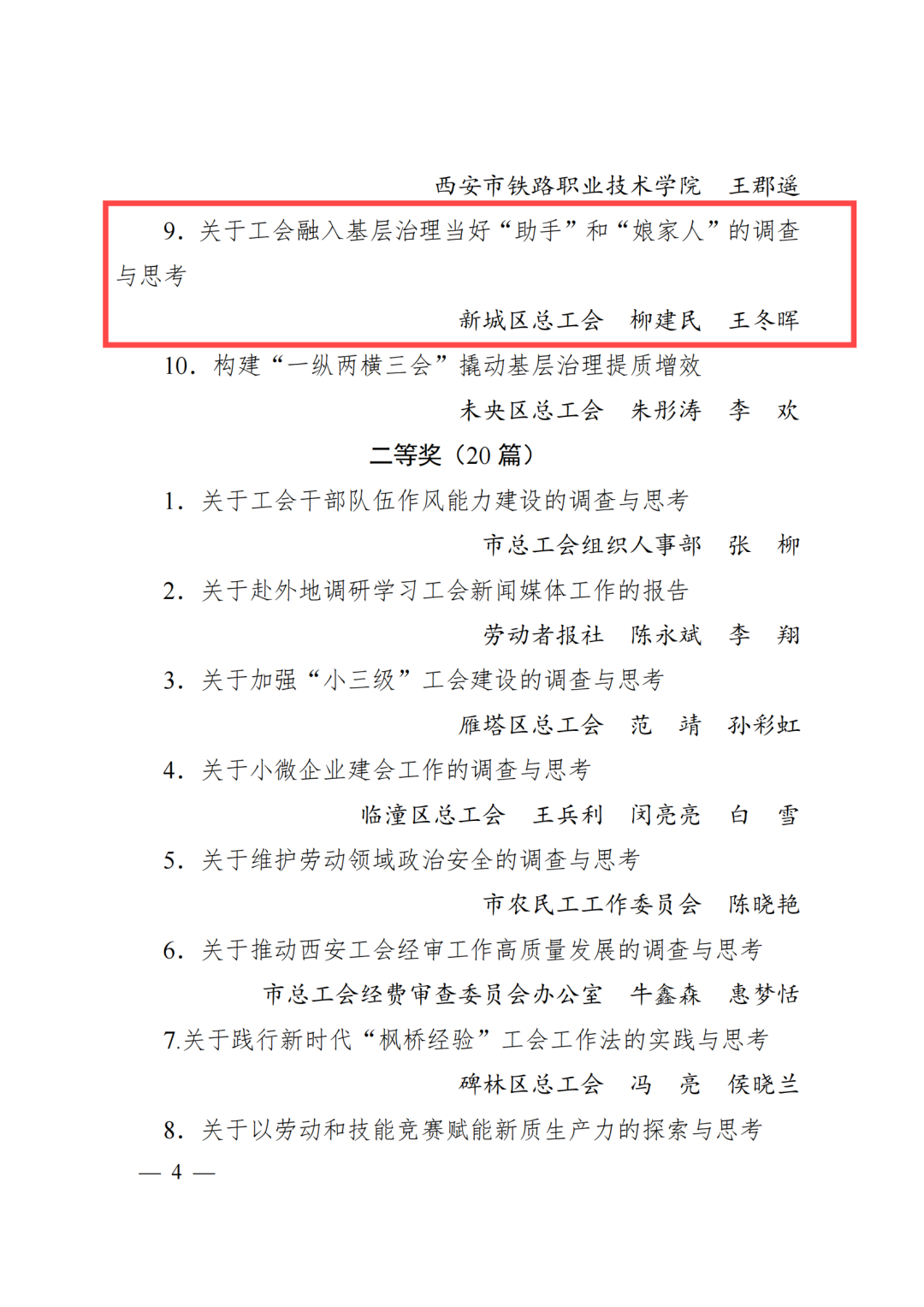 今天,市总工会表彰了2024年全市工会优秀调研成果和工运理论研究成果,新城区总工会三篇成果上榜,分别获一、二、三等奖,新城区总工会获评2024年全市工会调查研究工作先进单位!