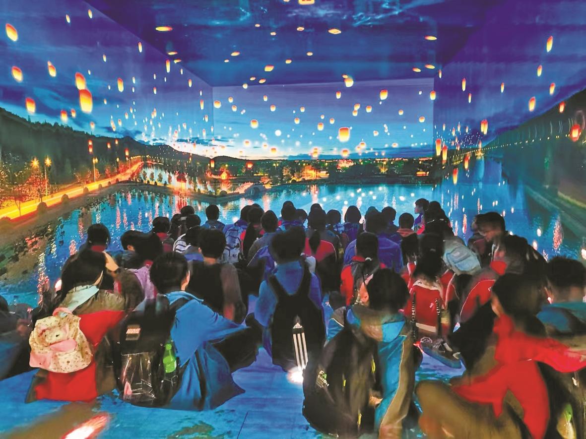 今年7月,经过数月的改造,升级后的慈城古县衙新增了许多互动点位与装置,更新了陈列内容与形式,全方位、多角度地提升了游览体验。在这里,北仑灵山书院初中部同学们进入了一个无尽想象的沉浸式世界:一幅“慈城清风图卷”以科技形式动态形式展示古代慈城的人文古迹、民俗风情、县域治理等场景,如同一部古慈城百科全书;CAVE虚拟现实技术把同学们“带回”古代的慈城,在数字世界与现实文明交织的考验中,经历改变人类命运的冒险。而明年慈城还将联合宁波移动、咪咕公司建立数智文旅创新中心,打造“江南小长安”慈城古城XR沉浸式元宇宙大空间,以科学探索、历史文化、艺术创意、自然生态等为主题,布局多个沉浸式体验场景,打造数字化研学内容。数字、科技赋能研学游,让同学们兴趣满满,也难怪有家长说:“在慈城古县城的研学体验中,我从孩子们的眼中看到了未来。”