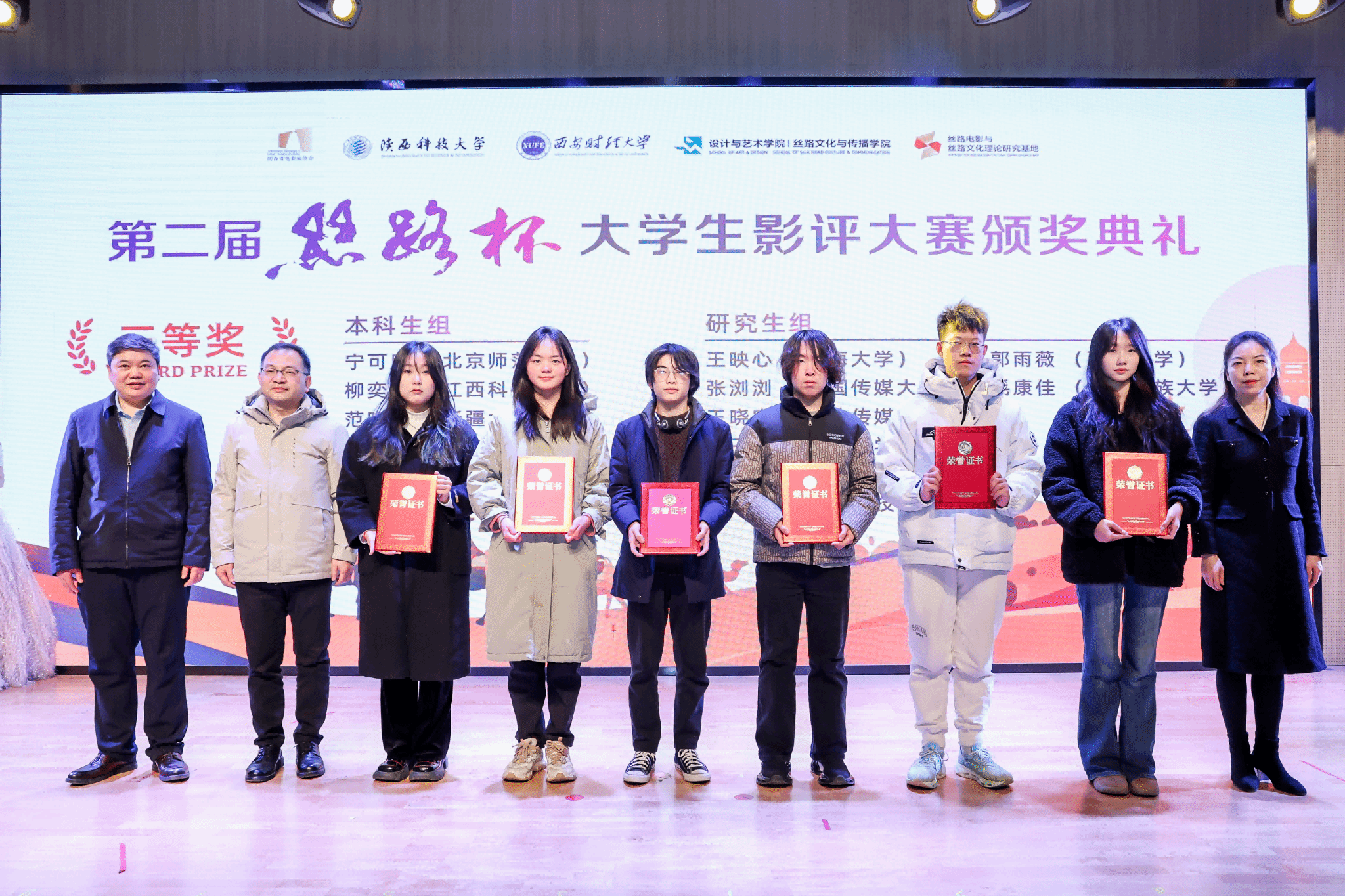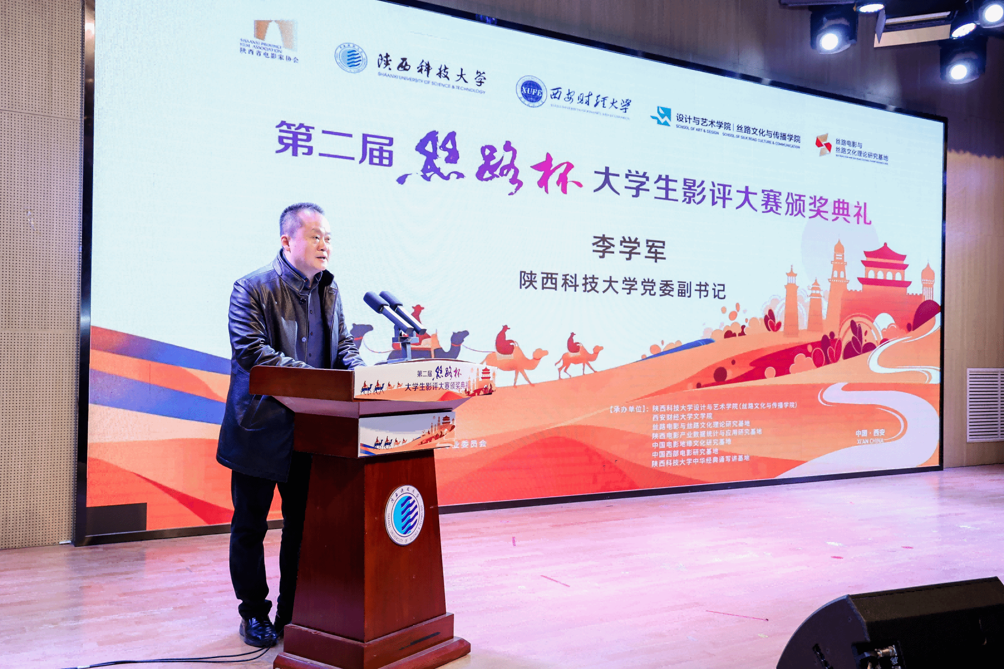 12月17日下午,“第二届‘丝路杯’全国大学生影评大赛”颁奖典礼在陕西科技大学举行。陕西科技大学党委副书记李学军,中国高等院校影视学会副会长、教育部长江学者特聘教授、北京大学教授陈旭光,西安财经大学副校长傅彤、中共陕西省委宣传部电影处副处长李晓楠,西安曲江影视集团总经理李珂,陕西省电影家协会副主席张东灵等出席并颁奖。