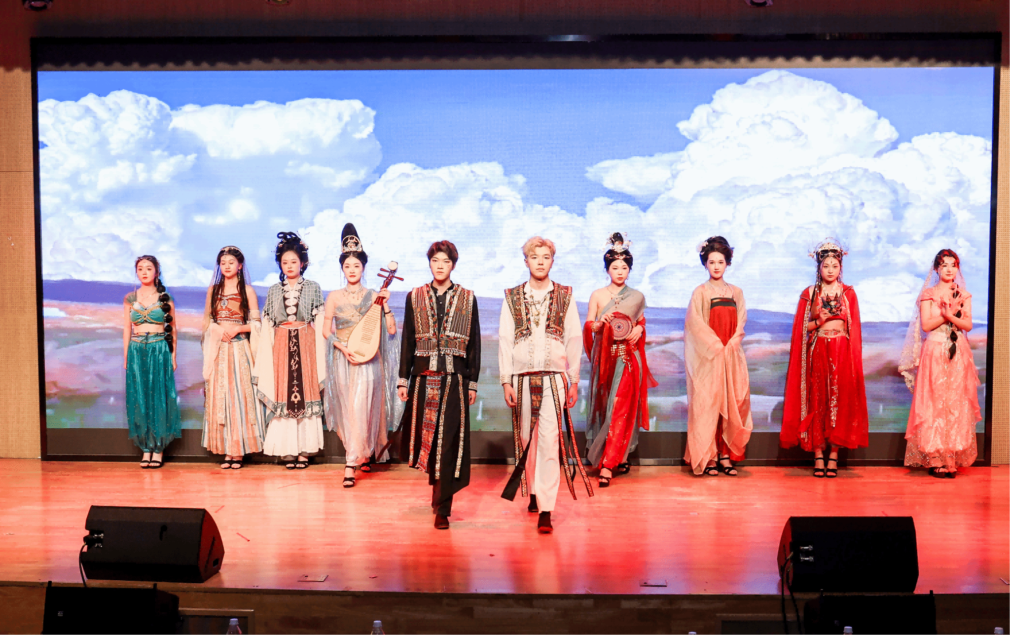 颁奖典礼分为四个篇章,以开场舞《盛世》拉开序幕,现场播放了我校学生剪辑的短片:《沙漠绿洲丝绸之路》《草原·雪原丝绸之路》《海上丝绸之路》《西南丝绸之路》,这四个短片分别选取了丝绸之路题材影视历史发展过程中的四个重要地理区位,用极具代表性的影视片段合成生动地展示了丝绸之路的辉煌与历史发展脉络。受邀参加此次颁奖典礼的领导嘉宾分别为优秀奖、优秀指导教师、优秀组织奖、三等奖、二等奖、一等奖等获奖同学、教师及单位颁发荣誉证书并合影留念。此外我校设计与艺术学院的学生表演了独舞《丝路幻影》、模特走秀《丝绸之路万里行》、朗诵《千年一路,丝绸荣光》等精彩节目,为现场观众带来了一场极致的视听盛宴,整场颁奖典礼以丰富的艺术形式呈现了丝路文化独特的艺术魅力,赢得了现场观众热烈的掌声。