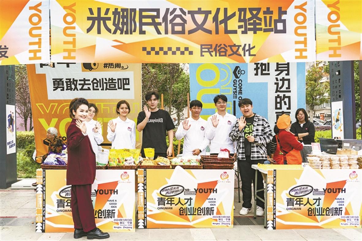 “米娜民俗文化驿站”参加宁波市北仑区的实践成果展示活动(左一是米娜瓦尔·艾力)。