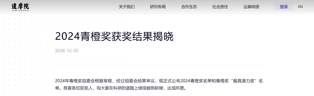 12月20日,达摩院揭晓2024青橙奖获奖结果。