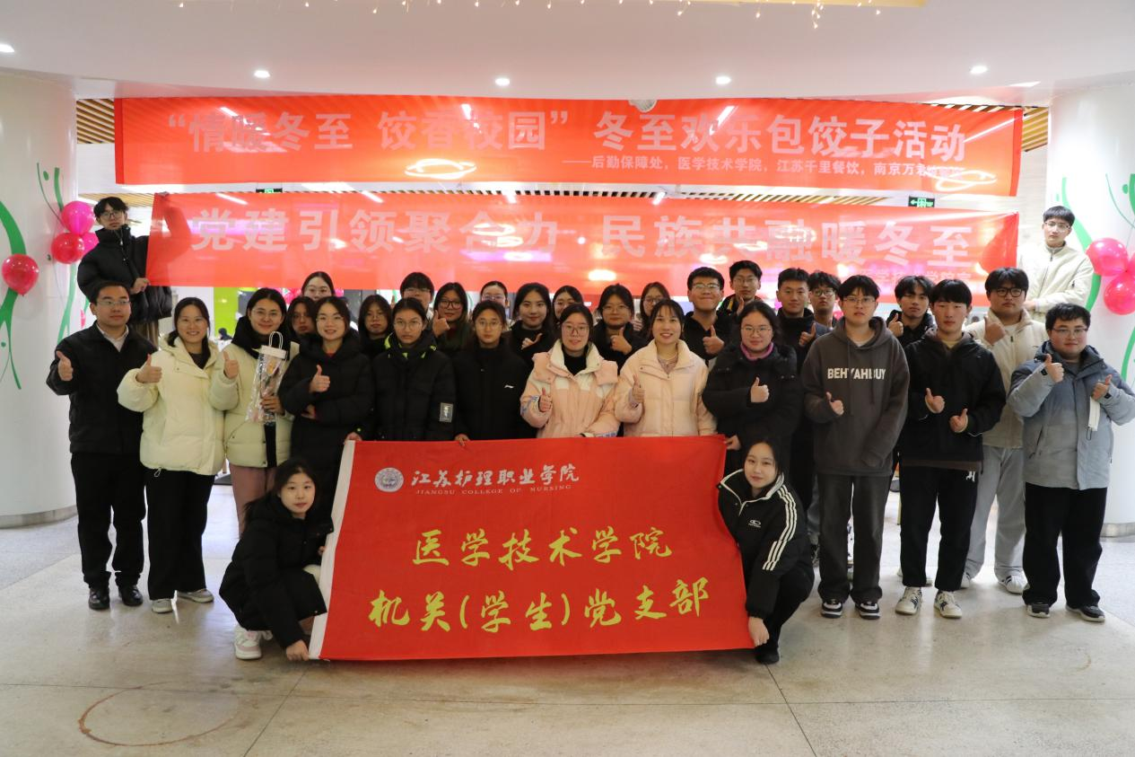 12月18日下午,“冬至”节气即将来临,江苏护理职业学院医学技术学院机关(学生)党支部联合后勤保障党支部在科技路校区开展“党建引领聚合力 民族共融暖冬至”主题党日活动。活动得到了江苏千里餐饮、南京万君粮餐饮的大力支持。校党委副书记、院长傅玉峰,校党委委员、宣传统战部部长朱郁草出席并参加了活动;医学技术学院“一站式”学生社区党员干部、学生入党积极分子以及少数民族学生代表共100余名师生参加了活动。