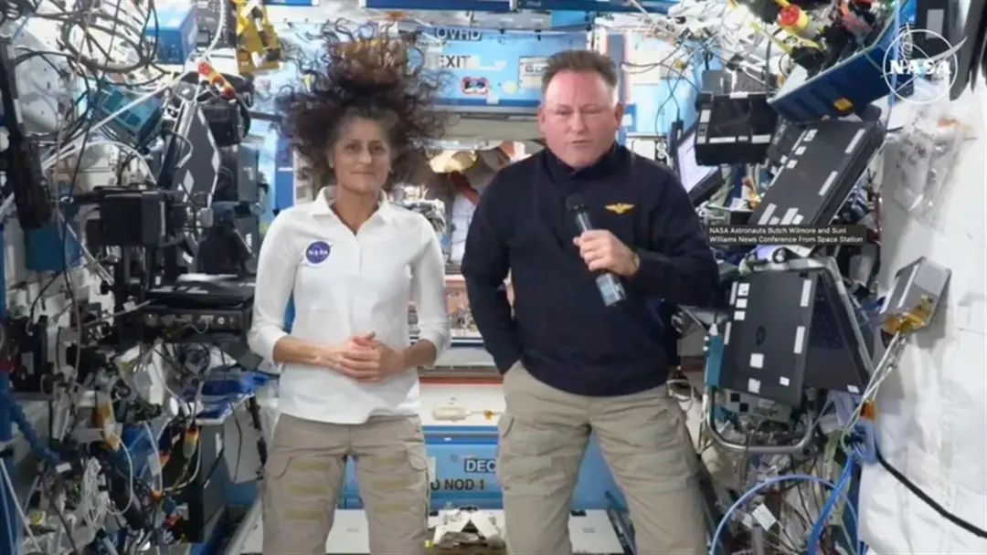 ▲9月13日,威尔莫尔和威廉姆斯在国际空间站举行新闻发布会(图片来源:环球网)