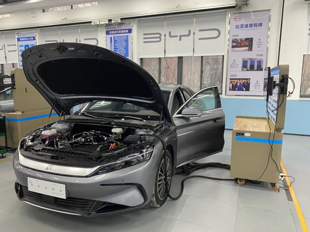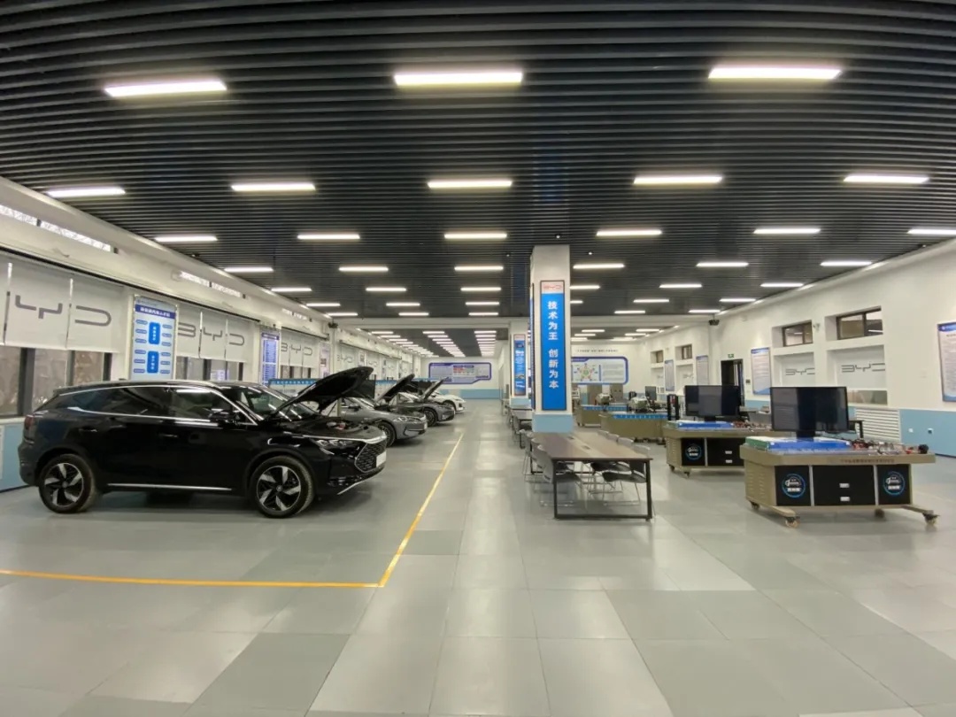 据悉,“比亚迪现场工程师学院”实训中心建筑面积约1000平方米,实训设备总投资500余万元,配备先进的新能源汽车实训设备。包括动力充电实训区、整车实训区、理实一体化教学区,是集教学、实训、研发于一体综合性实训基地。