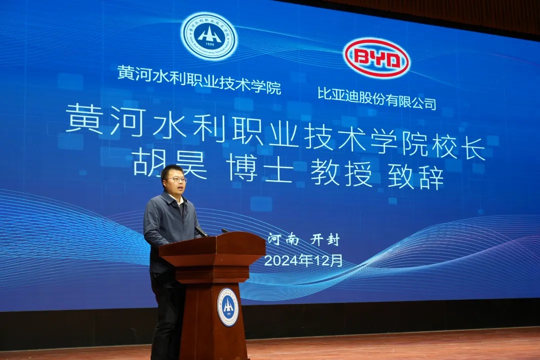 胡昊指出,为了更好地对接新能源汽车产业发展需求,深化产教融合、校企合作,黄河水利职业技术学院与比亚迪股份有限公司开展多次互访交流,经过近一年的精心筹备,最终,比亚迪现场工程师学院在学校落地生根。成立“比亚迪现场工程师学院”,既是黄河水利职业技术学院贯彻落实党的二十届三中全会精神、全面深化产教融合、推进技术技能人才培养体系变革的重要实践,也是学校是贯彻落实省委省政府决策部署、建强技能人才队伍、推动我省制造业高质量发展的重要举措。