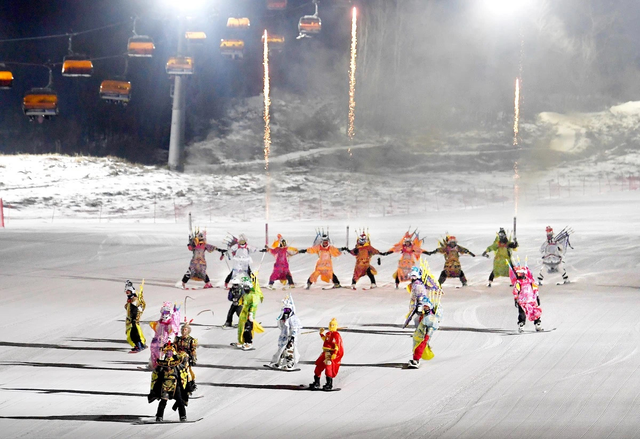 万科松花湖度假区还在夜滑时段推出“冰雪秀”等系列国风表演活动
