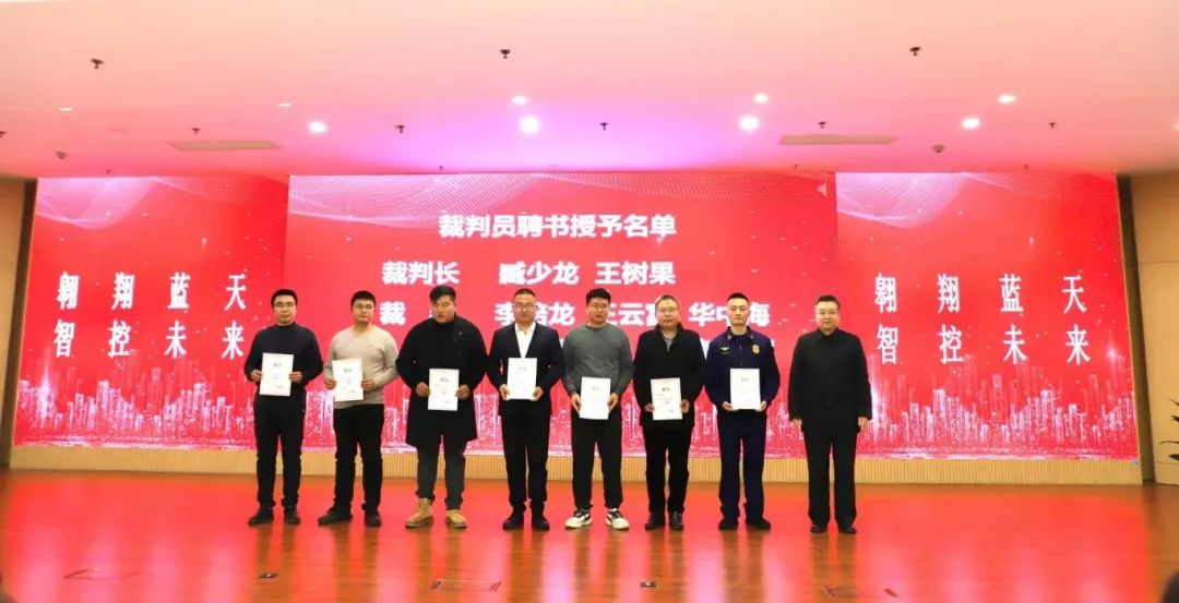 竞赛期间,裁判组秉持公正公平原则,确保了比赛的顺利进行。省政府参事、无人机分会荣誉会长康建荣为臧少龙、王树果等裁判颁发聘书,表彰他们在维护比赛公正性和推动行业发展中的贡献。