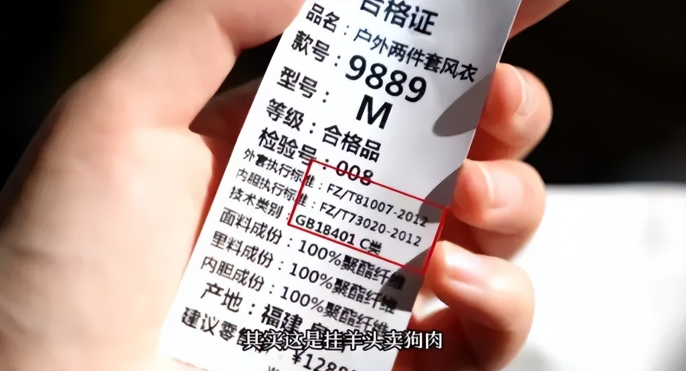 冲锋衣的国家标准是GB/T 32614-2023或GB/T 32614-2016标准。而市场中一些所谓的“冲锋衣”,吊牌标注的执行标准为FZ/T 81007-2022或FZ/T 81007-2012,是《单、夹服装》标准,是适用机织面料生产的单、夹服装,不具有功能性要求,买到这样的衣服就是买到一件像冲锋衣样式的夹克外套。