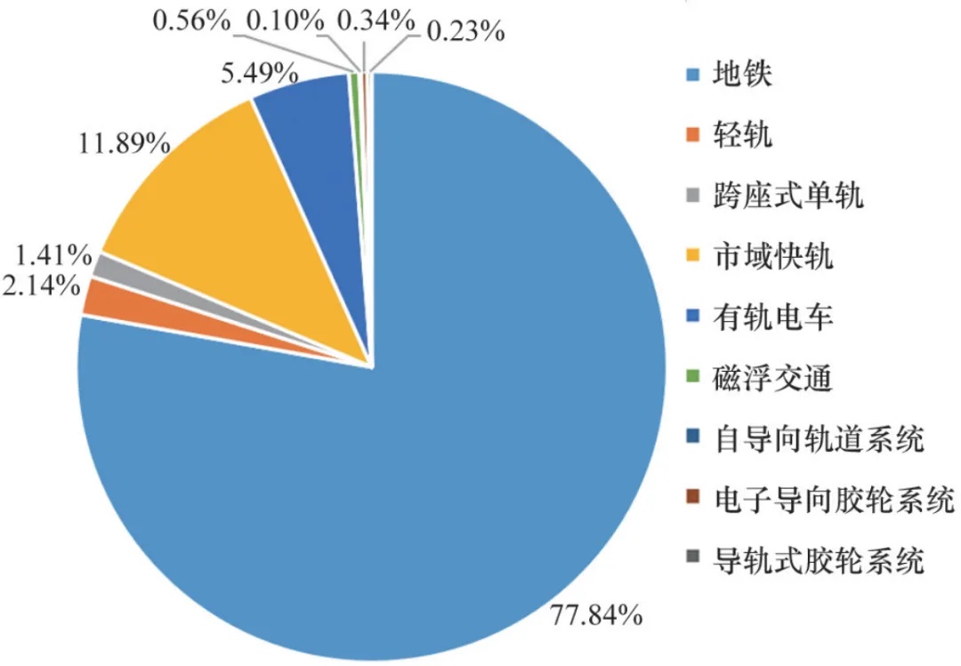 图1 中国城市轨道交通各制式里程占比
