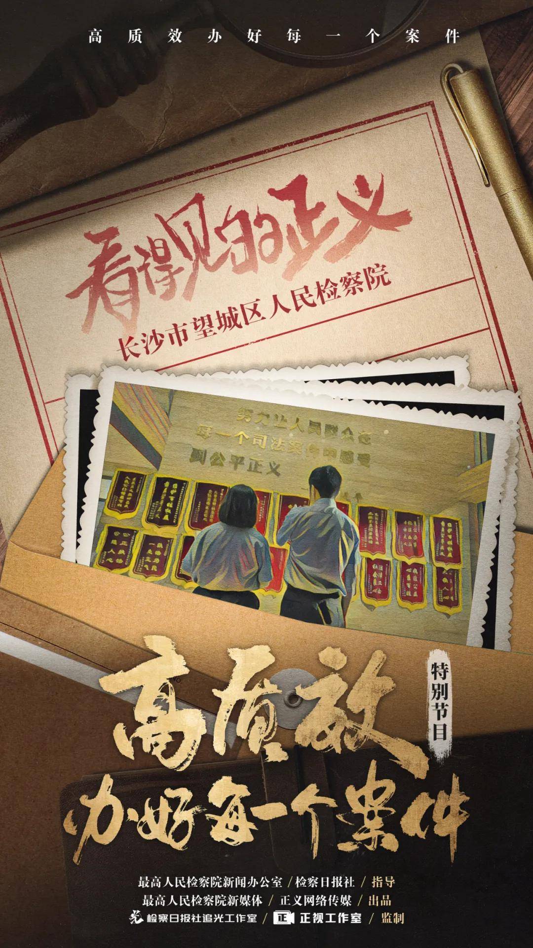 (指导单位 最高人民检察院新闻办公室 检察日报社 联合出品 最高人民检察院新媒体 正义网络传媒 监制 检察日报追光工作室 正视工作室 协助拍摄 湖南省长沙市望城区人民检察院 总出品人:孙丽 总监制:魏春华 闫慧萍 总编导:胡兮兮 史红美 丁靓 总摄影:郭奥凝 总统筹:黄汐 杨洋 《看得见的正义》节目组 策划:史红美 制片:刘丁奇 文字:胡兮兮 史红美 脚本:史红美 崔炼 董帆 统筹:曾欢 黄驰宇 廉秀利 摄影:郭奥凝 翟焜)