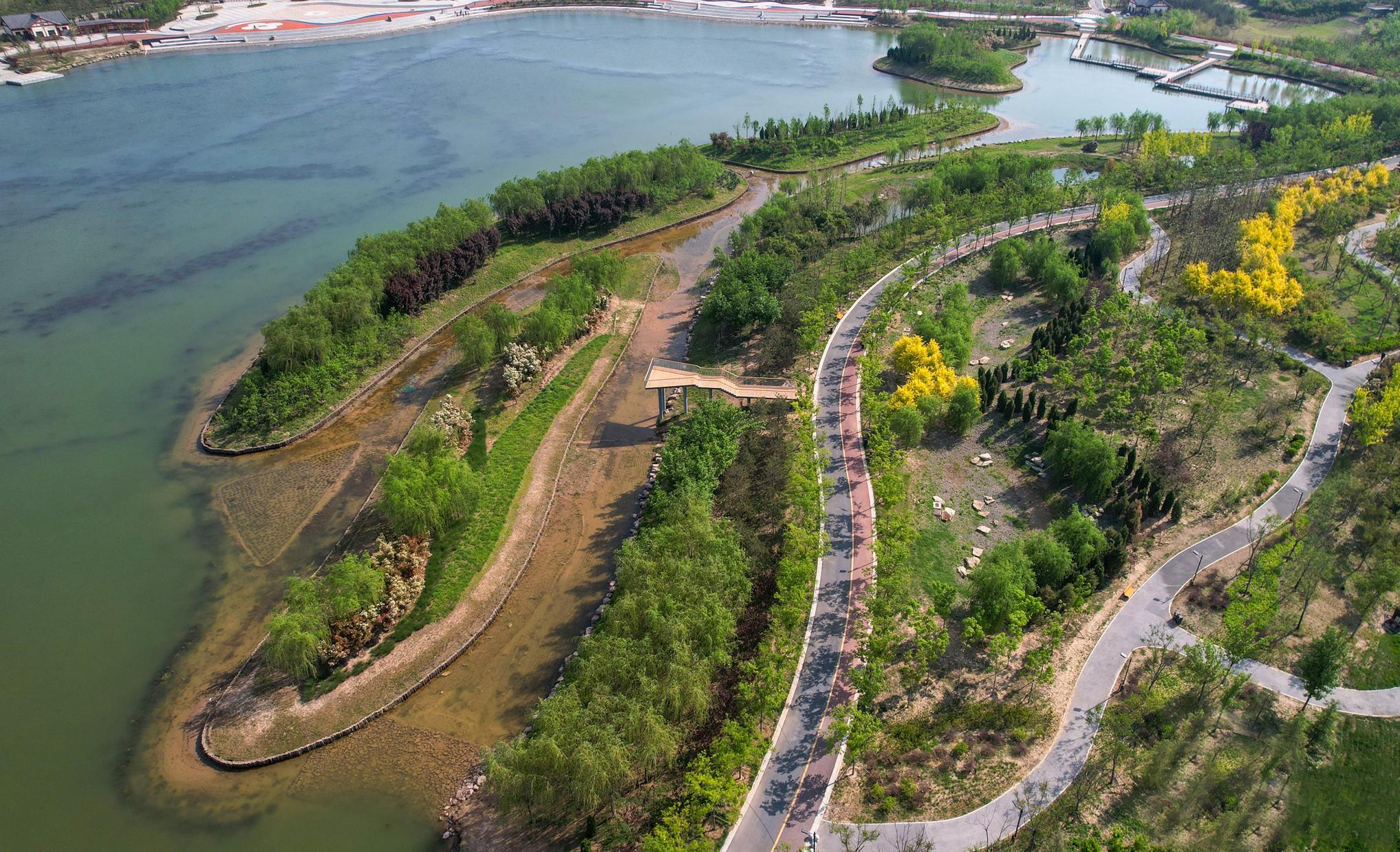 项目在完成蓄滞洪功能保障防洪安全的基础上,融入了城市排涝、湿地构建、休闲游憩、文化展示、人文景观等多种功能。