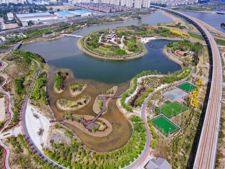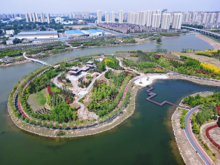 通过治理1.40km长马家河城区河道,建设成了马家河晋安路~宋城路段蓄滞洪工程,使下游河段防洪标准由不足20年一遇提高到了50年一遇。 因工程位于城市中心区域,周边环境复杂,各方需求与约束多,因此进行了多目标融合设计,统筹防洪、除涝、生态修复、雨水利用、湿地科普、文化传承、休闲游憩等多项功能,在有效保障城市安全、改善生态环境的基础上,实现了城市土地的集约、高效利用。 建成后的工程,在满足防洪除涝保证城市安全的基础上,为城市增加总占地面积92.28hm2的湿地公园,其中湿地面积占比74%,形成了高质量城市生态空间。为城市增加了游憩区域面积10.4 hm2,绿道长度3.6km,公园可直接服务4km2的城市区市民