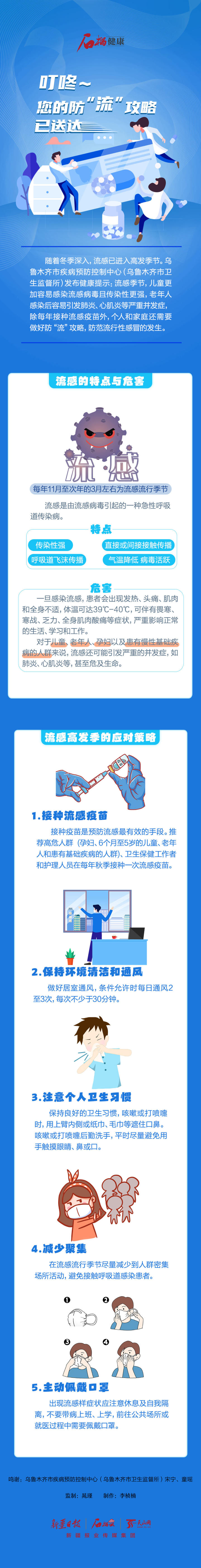 随着冬季深入,流感已进入高发季节。乌鲁木齐市疾病预防控制中心(乌鲁木齐市卫生监督所)发布健康提示:流感季节,儿童更加容易感染流感病毒且传染性更强,老年人感染后容易引发肺炎、心肌炎等严重并发症,除每年接种流感疫苗外,个人和家庭还需要做好防“流”攻略,防范流行性感冒的发生。