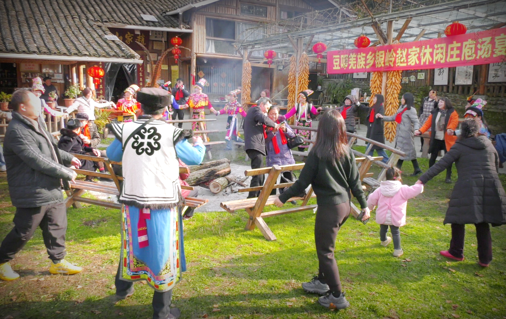 冬至时节,在绵阳市平武县豆叩羌族乡银岭村,一场热闹的庖汤宴吸引了不少游客来到这里,看杀年猪、吃庖汤,感受独特的羌族文化。